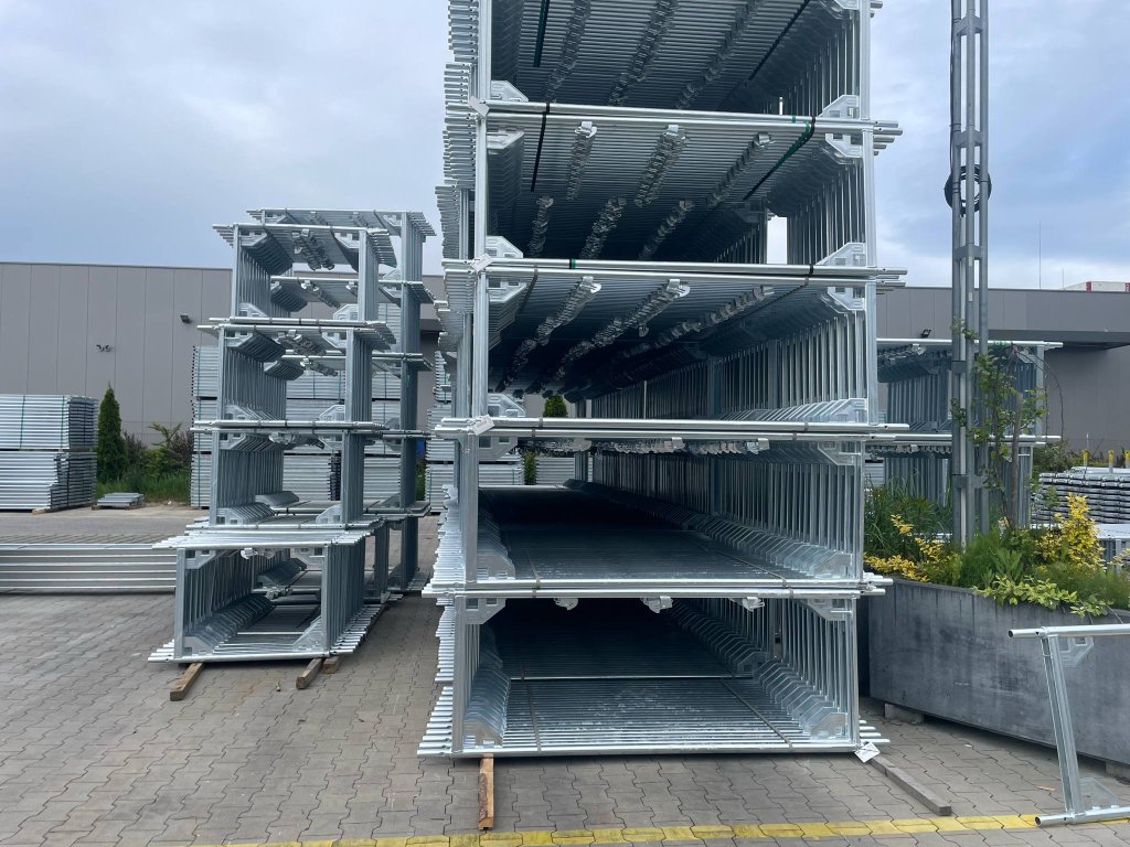 Kompletní sestava rámového lešení značky Baumann Alfix o rozměrech 45x6.4m 292m2 pracovní plochy (15polí) s hmotností 2470kg